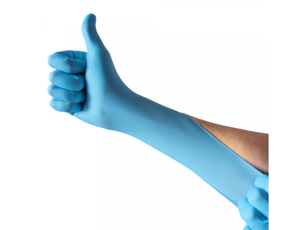 Nitrilové rukavice LONG - modré dlouhé extra silné (balení 100 ks)