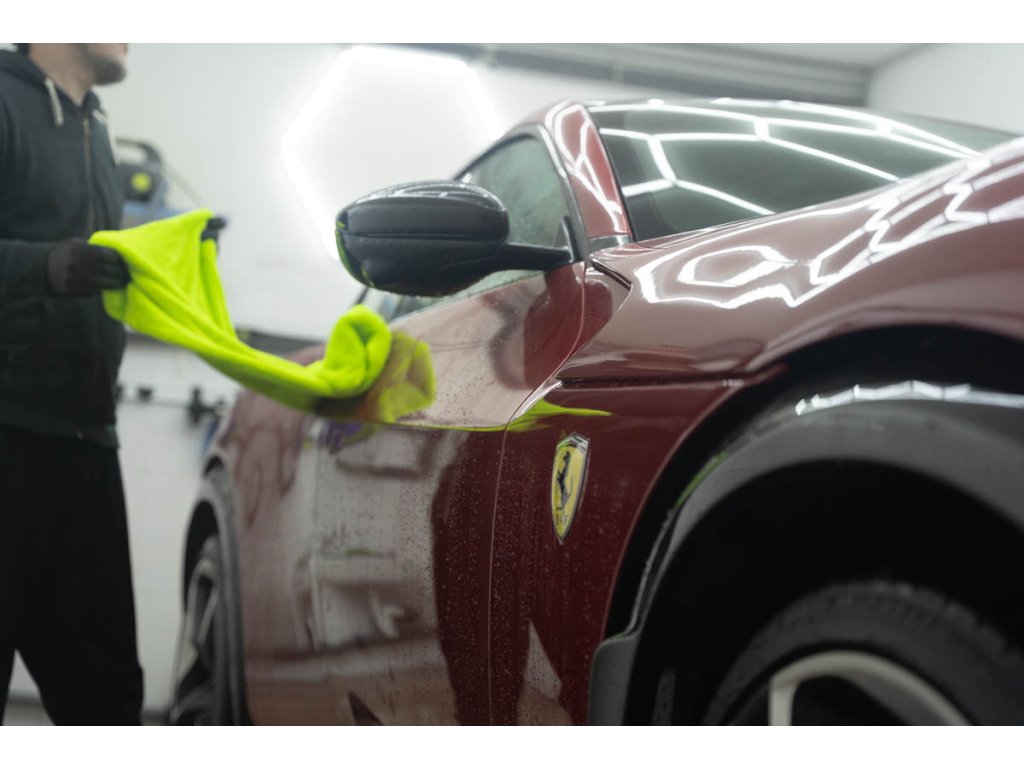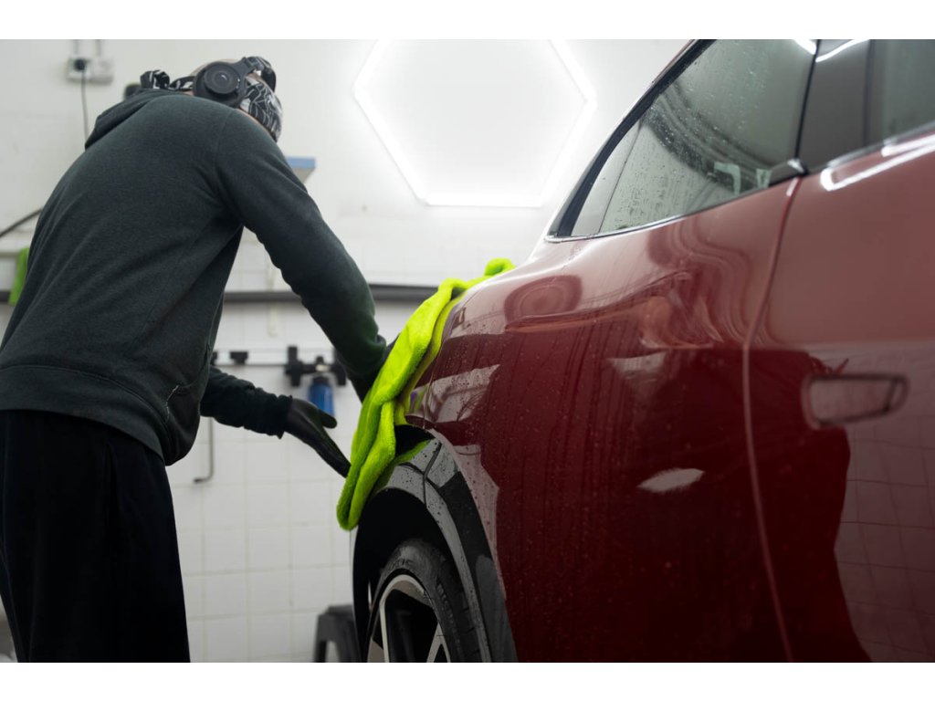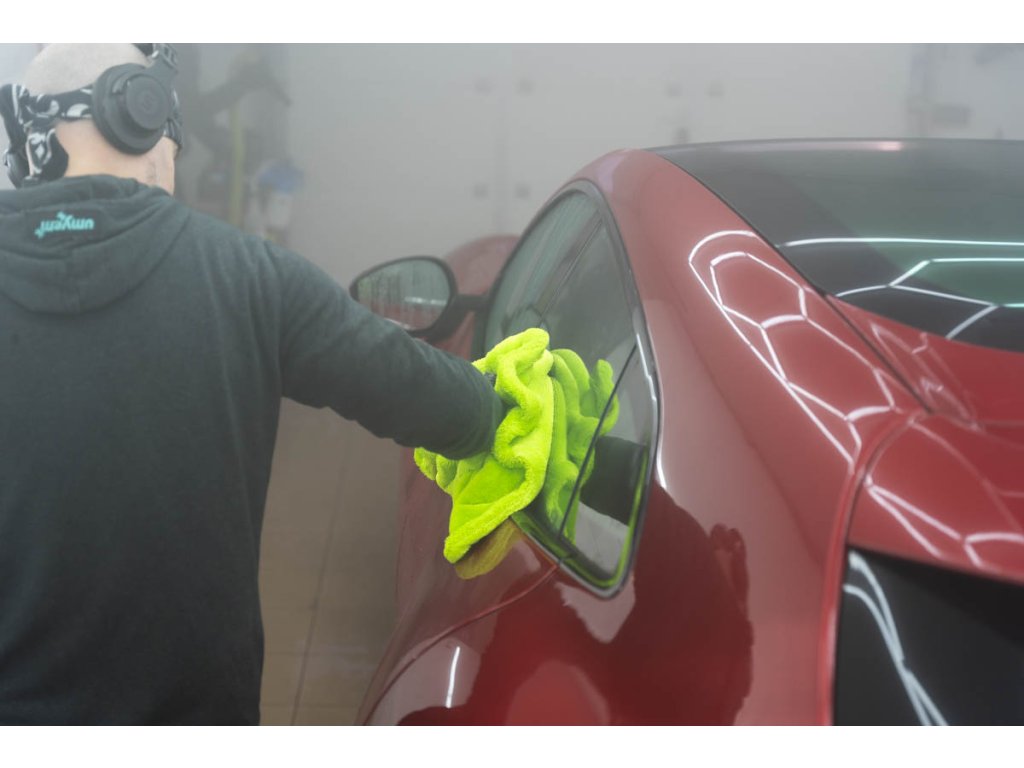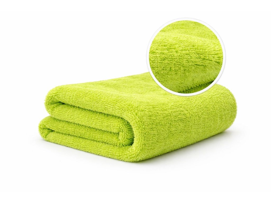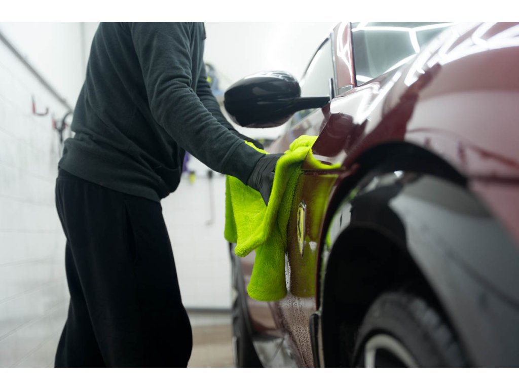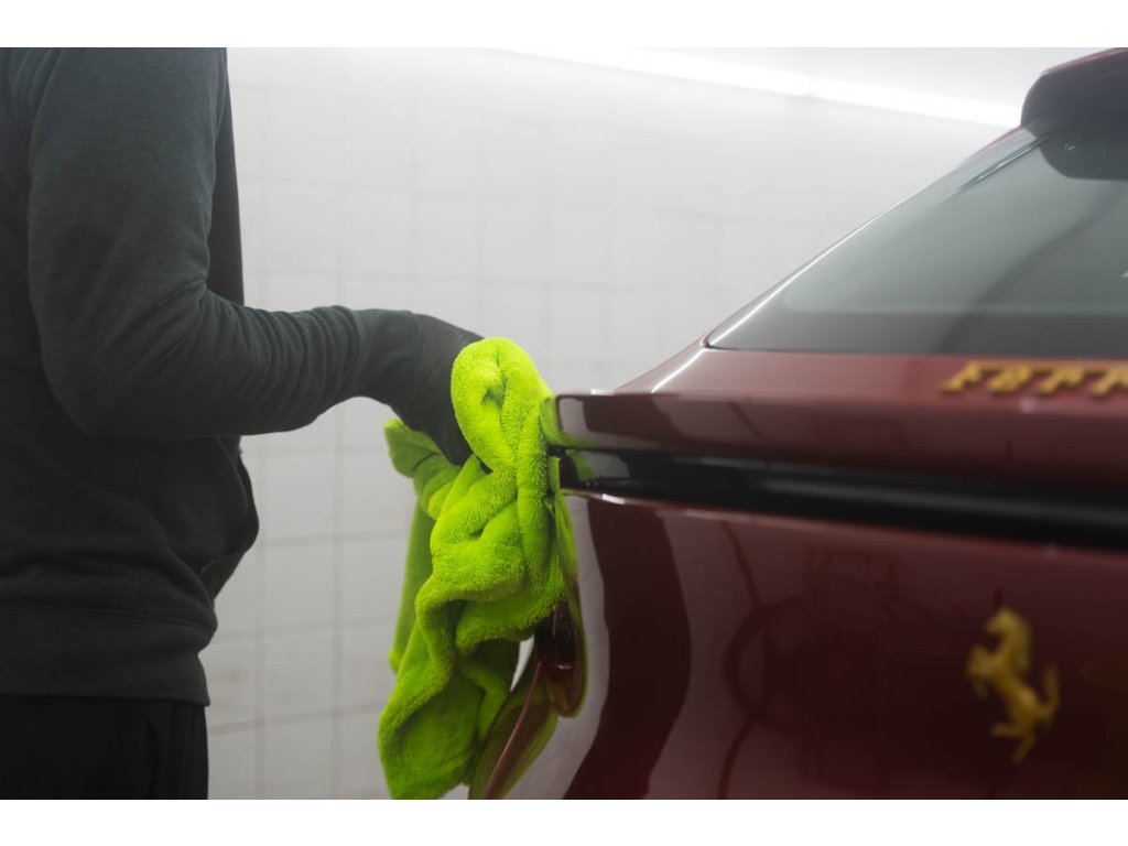 Ručník má vysokou hustotu vláken 1400 GSM, která saje stejně dobře jako motor BMW olej (jen vtip, proti BWM nic nemáme 😁). Jeden ručník zvládne celé auto průměrné velikosti Octavie – žádné ždímání uprostřed práce. Stačí přiložit, lehce přetáhnout a je sucho. Funguje perfektně na ošetřeném laku, kde jde voda krásně dolů, ale poradí si i s neošetřeným lakem.